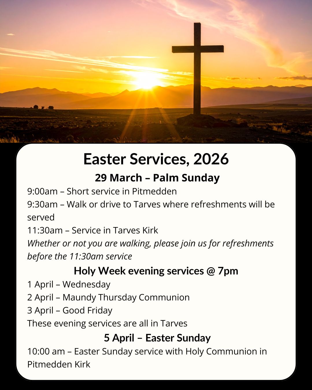 If you are unable to come to church, you can catch up on YouTube. You can also access services from Pitmedden live through Zoom, but not from Tarves as the connection is too unreliable.